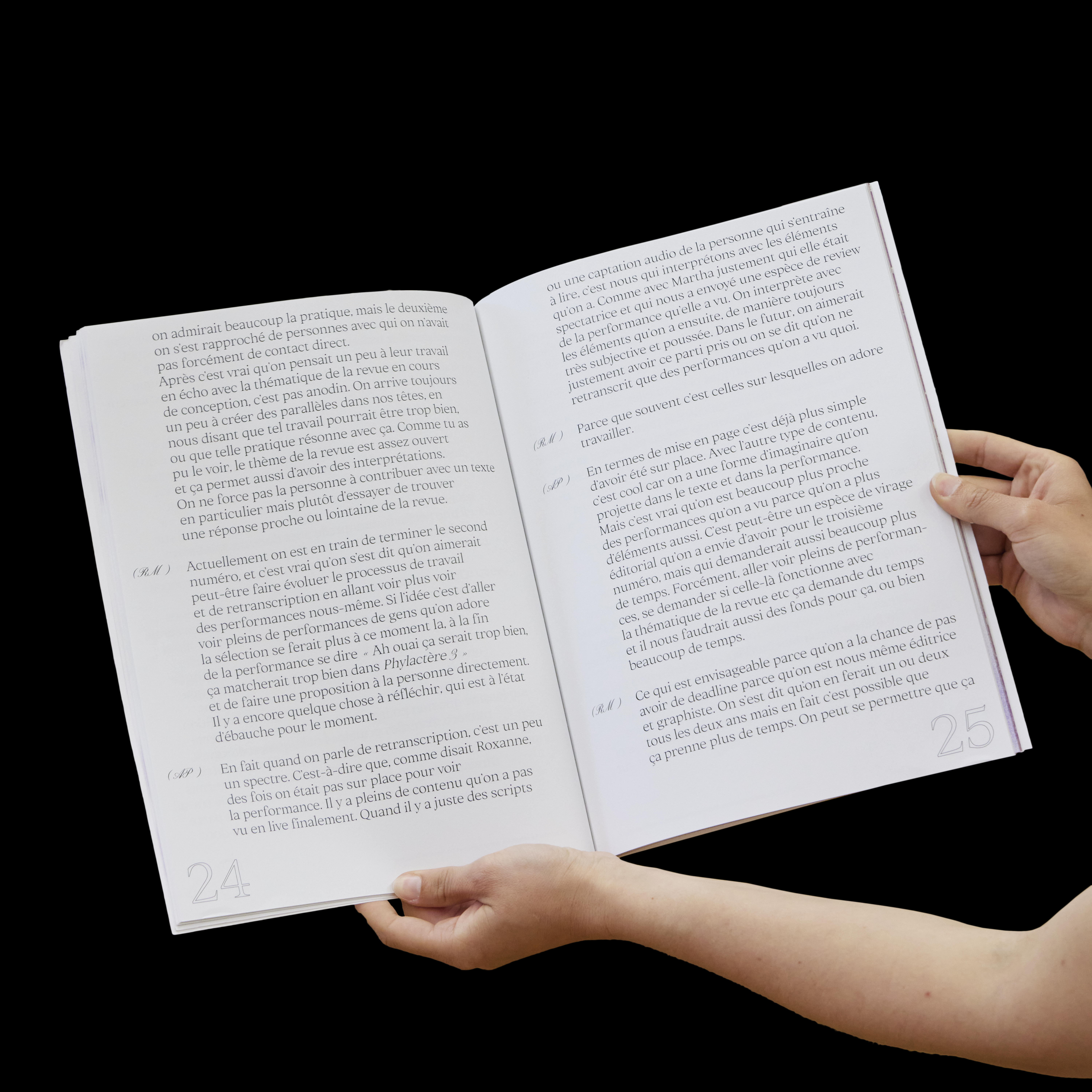 Mise en page de mon écrit de master sur la retranscription de l'oralité dans la performance artistique.