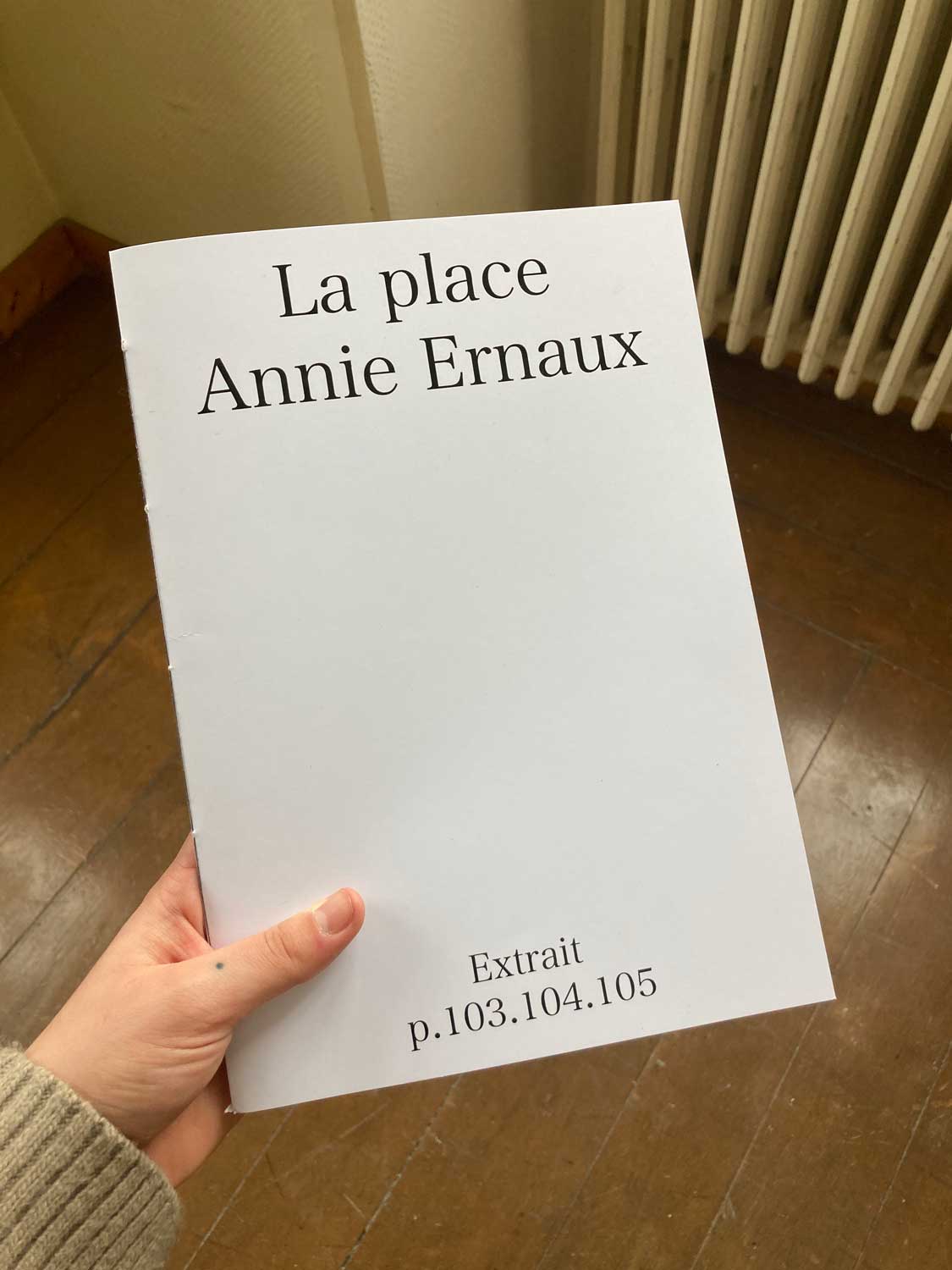 Un travail sur la notion du deuil, basé sur un extrait de "La Place", roman de Annie Ernaux et sur la série de photographie de Allan Salas.
