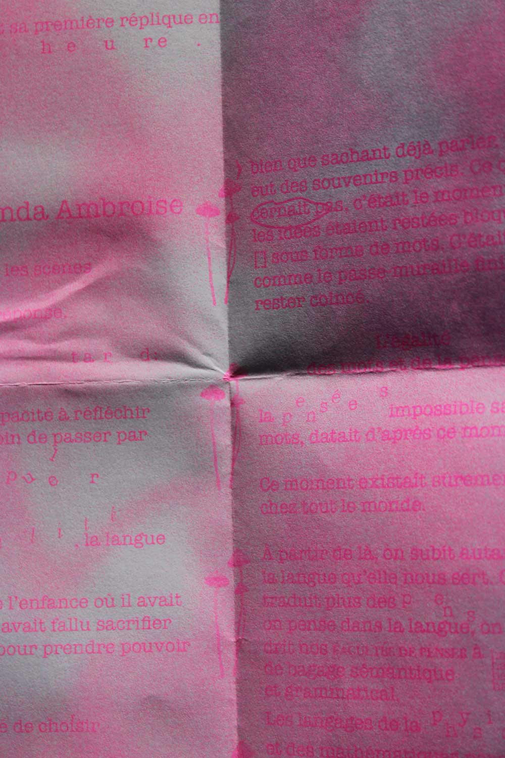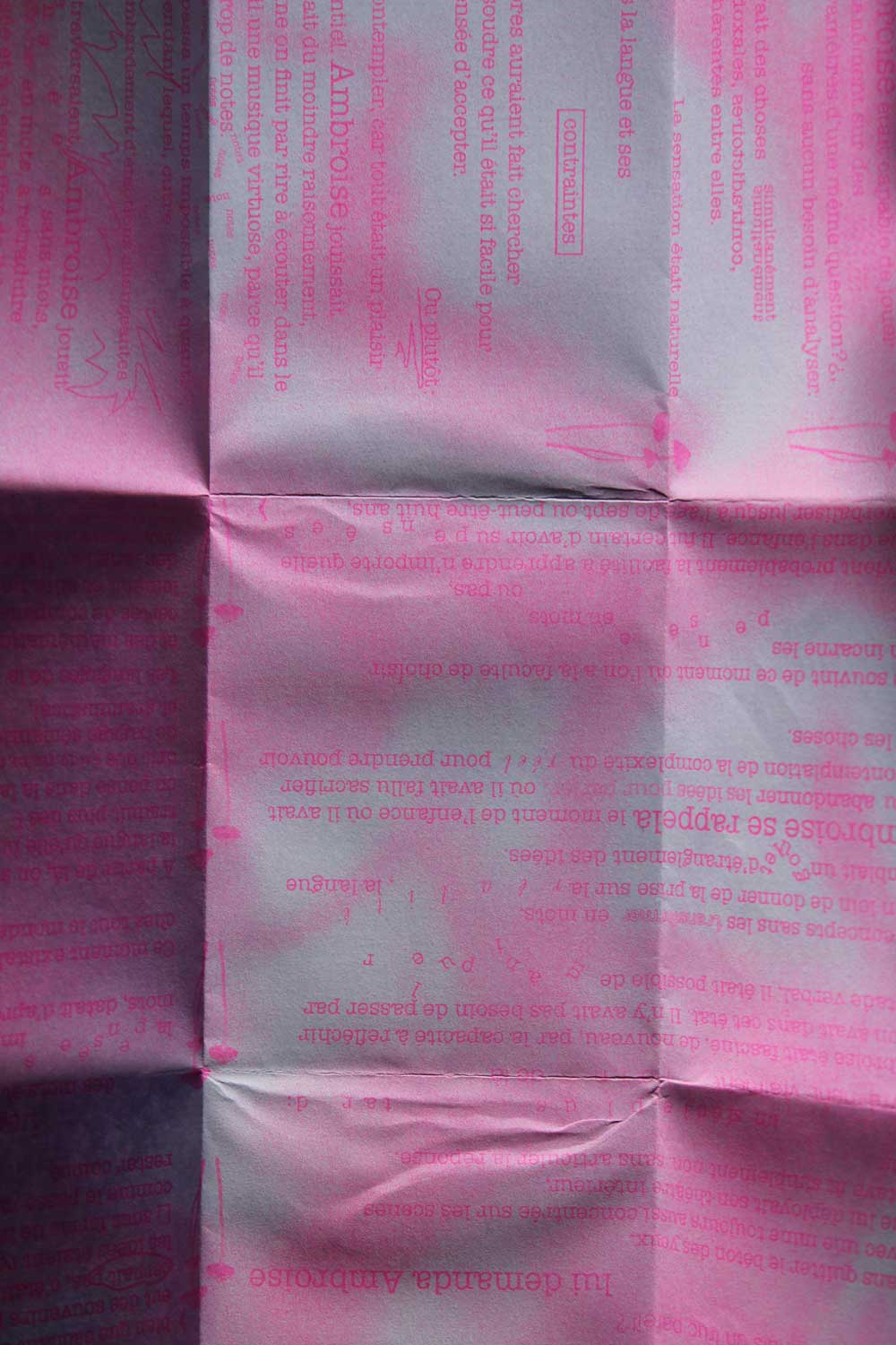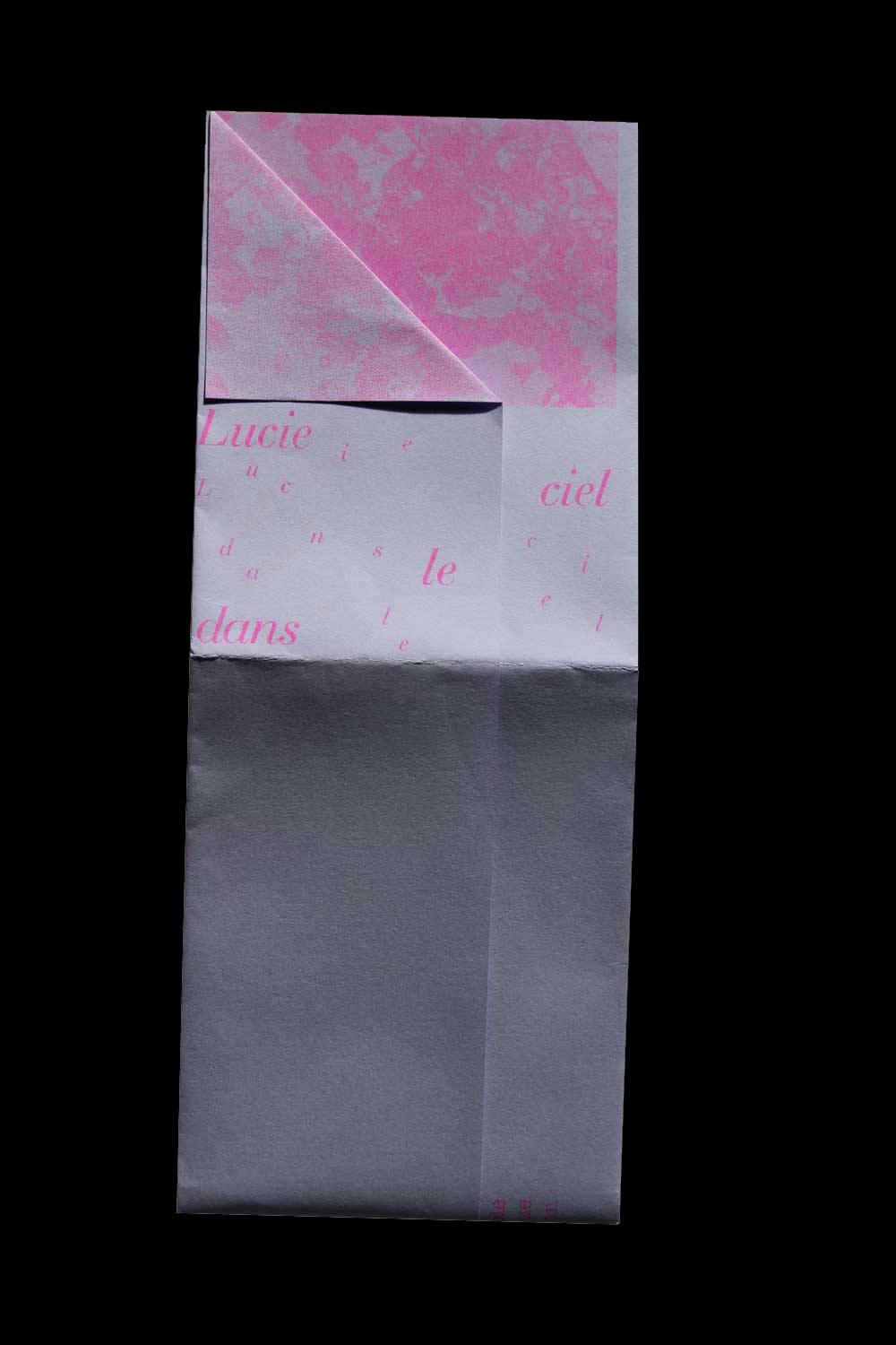 Mise en page d'un extrait du texte "Lucie dans le ciel" de Tom Verdier, pour le collectif WeSow , dans le cadre d'un stage avec Paul Faure.