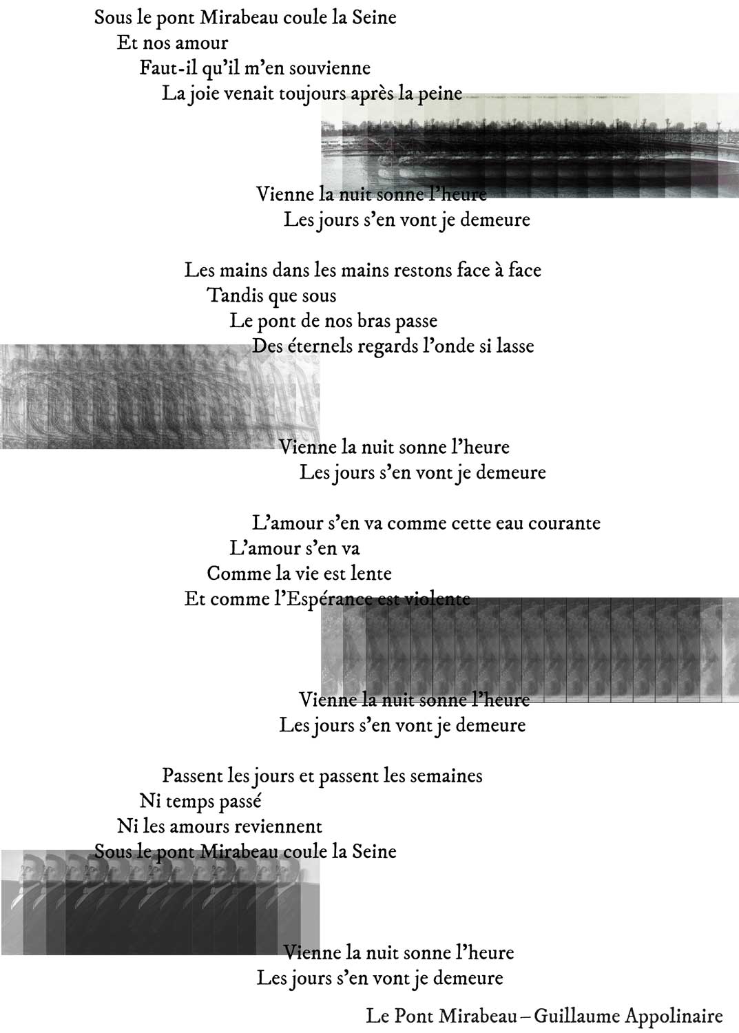 Expérimentations autour du poème "Le Pont Mirabeau" de Guillaume Appolinaire.
